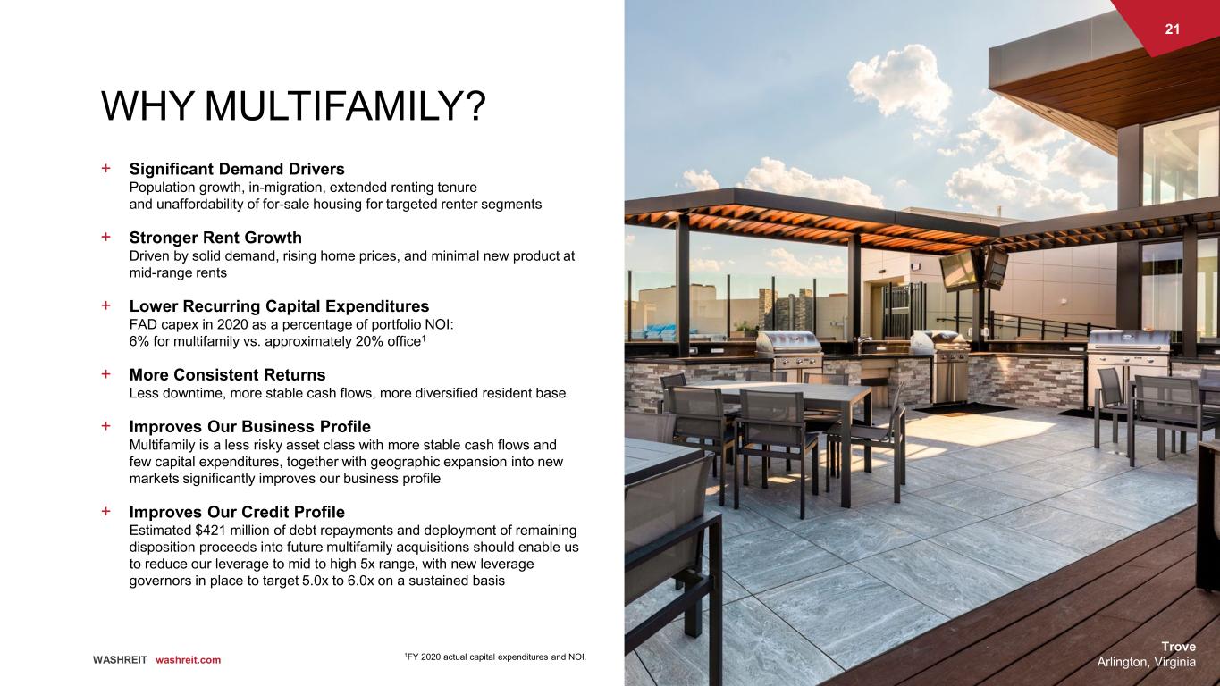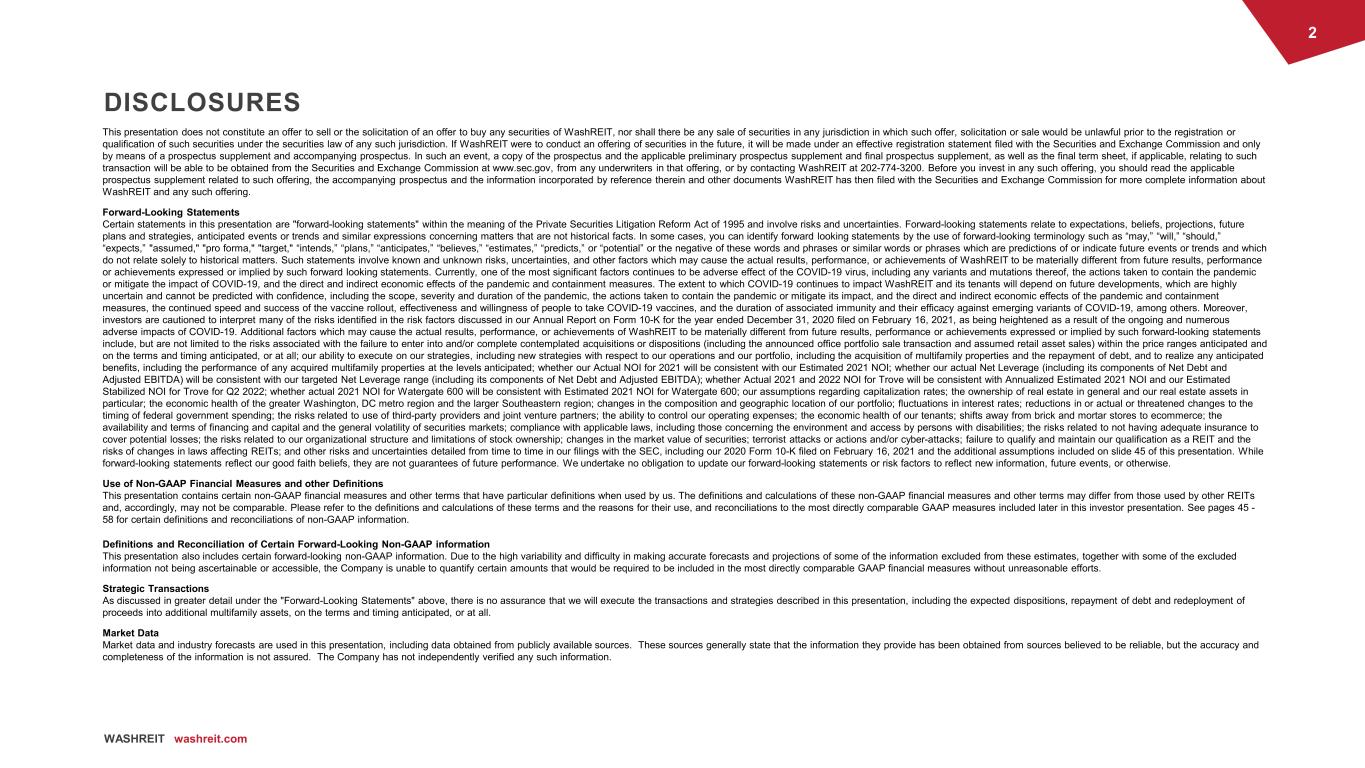 1 WASHREIT washreit.com Investor Presentation Accelerating Our Transformation into a Multifamily REIT June 15, 2021