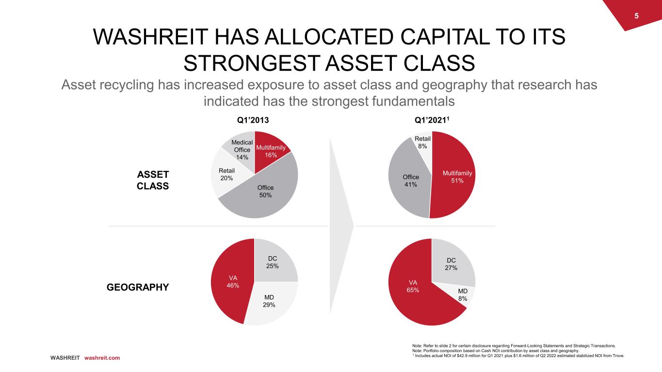 4 WASHREIT washreit.com STRATEGIC TRANSACTIONS OVERVIEW Trove Arlington, Virginia