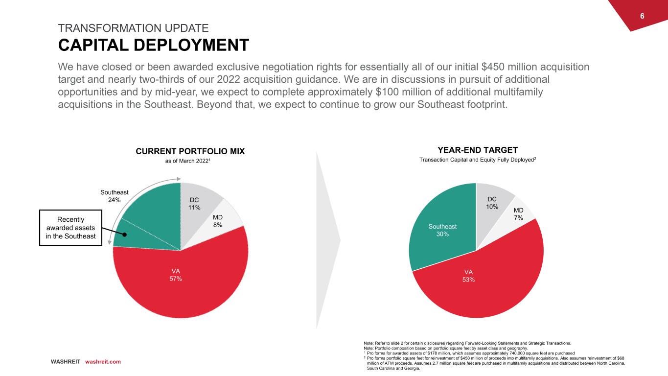 5 WASHREIT washreit.com TRANSFORMATION UPDATE