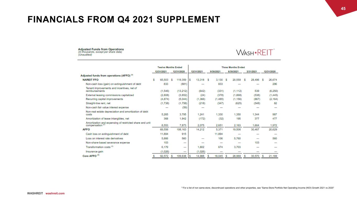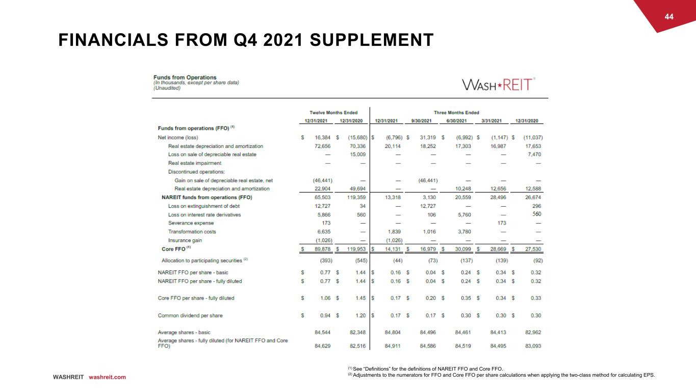 43 WASHREIT washreit.com FINANCIALS FROM Q4 2021 SUPPLEMENT