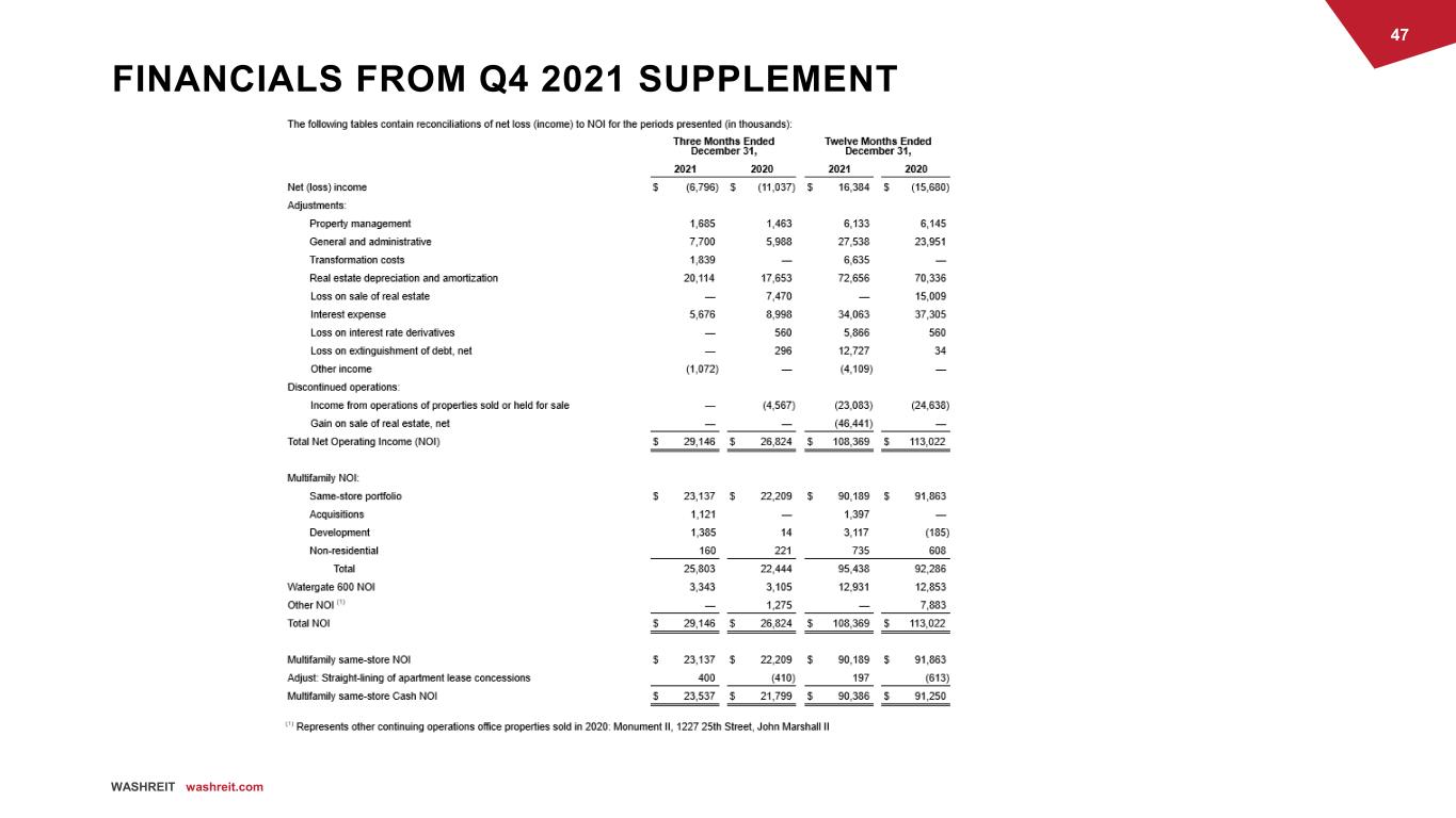 46 WASHREIT washreit.com FINANCIALS FROM Q4 2021 SUPPLEMENT