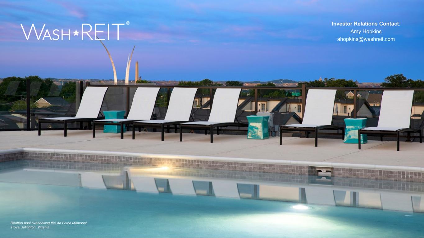 50 WASHREIT washreit.com Investor Relations Contact: Amy Hopkins ahopkins@washreit.com Rooftop pool overlooking the Air Force Memorial Trove, Arlington, Virginia